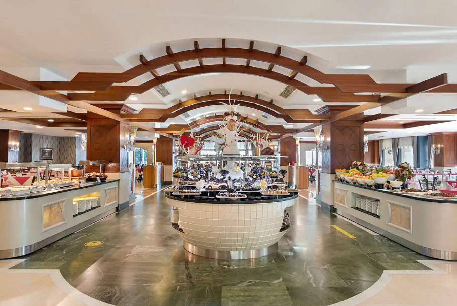 Her biri özenle tasarlanmış odalarda konforun tadını çıkarırken, zengin açık büfe restoranlar, dünya mutfaklarından lezzetler, özel içecekler ve snack servisleriyle damak zevkinizi şımartabilirsiniz.